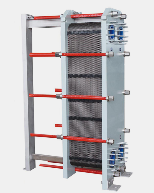 Heat or cool a fluid medium by transferring heat from one liquid to another. The gasketed plate heat exchanger is composed of a series of corrugated plates, which are assembled between the frame and the pressure plate. and the gasket acts as the seal between the plates. The fluid on both sides of the plate usually flows counter current through the heat exchanger, which can achieve the same working condition of the shell-tube heat exchanger. This provides the most efficient heat transfer performance to achieve very close temperature difference,In other word, the temperature difference between the outlet and inlet medium is come to small. In the removable plate heat exchanger with gaskets, the plates are equipped with elastic gaskets, which seal the channel and guide the medium to the spare channel. The plates are assembled between the frame plates and the pressure plates and compressed by tightening the bolts installed between these plates. The channel plate and pressure plate are suspended from the upper bearing rod and fixed in place by the lower guide rod, which is fixed on the pillar.This design is easy to maintain and adjust the heat exchange by reducing or adding plates. The reasonable matching of the plate ripple angle can greatly improve the heat exchange effect per unit heat exchange area, adjust the liquid resistance, save the heat exchange area, reduce the investment cost and shorten the investment recovery time. The flow, physical properties, pressure drop and temperature difference of the liquid determine the number and size of the plates. The chemical properties and corrosion characteristics of the liquid determine the materials of the plates and gaskets.Different corrugated plate structure designs not only improve the turbulence, but also form many supporting points, which can withstand the pressure difference between the media.