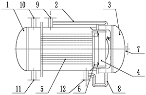 | U-tube bundle heat exchanger | ![]() | The structure features: only one tube plate,both ends of the tube are fixed on the same tube plate with U-shaped tube bundle, which can expand and contract freely. When there is a large or small temperature difference between the shell and the tubes, there will be no temperature difference stress. The utility model can make up for the complex structure of the floating head heat exchanger, and at the same time, the utility model can retain the advantages that the heat exchange tube bundle can be drawn out and the thermal stress can be eliminated. | Plate, less sealing points, reliable operation and low cost; The tube bundle can be drawn out, and easy cleaning. |